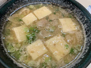 豚汁(中)+ご飯(中)+厚焼玉子+明太子+冷奴