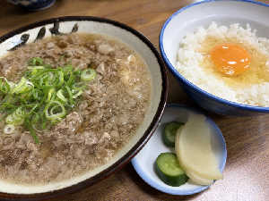肉うどんのうどん抜き、1時間行列に並び食す。