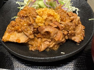 期間限定の豚らしく、肉が柔らかくてジューシーだった。生姜まみれの最後のシメとして最高でした。