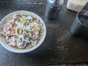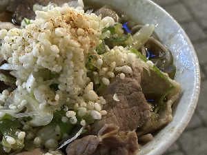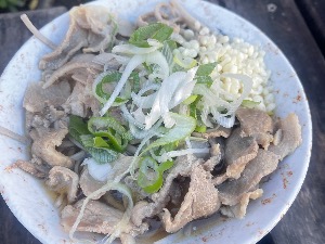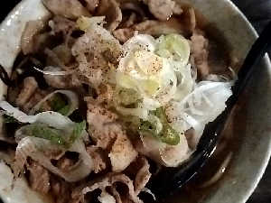 薄味の優しいつゆに肉、ネギどっさりがお。シンプルで至高の肉そばがお。ネギの量にとりちゃん大興奮がお。