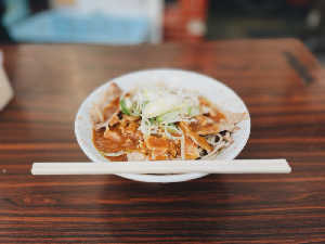 駅前まで歩いて店前のベンチで食事。外は寒いけどサウナ後だからこそ成せる技。麺が美味しかった!