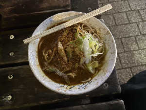 椎名町駅の南天で肉そば。夜風を受けながら立ち食い。あっさりしたつゆ、食べ応えのある肉はサ後に最高!