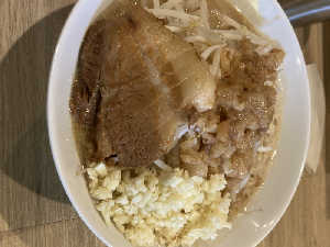 ド乳化二郎系。麺美味い。凶暴さは無し。ブタは薄め小さめ。