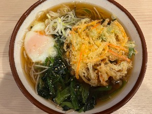 サウナの後は朝そばと野菜かき揚げで!