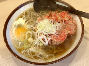 今回は紅しょうが天トッピング(510円)。温玉ほうれん草そばが400円は破格…!