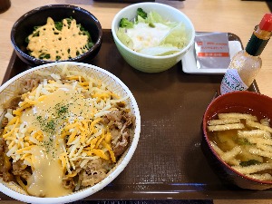 チーズに明太マヨにネギ、七味にタバスコ、紅生姜も。私は朝からいったい何を食べてるんでしょう