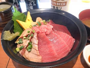 食べ比べ丼で乾杯‼️本マグロと南マグロのセットは、サイコーです