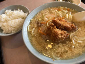 あっさりした鶏ガラベース?のスープ、 スープに浸ったチキンカツがこれまた美味なのだ🥰