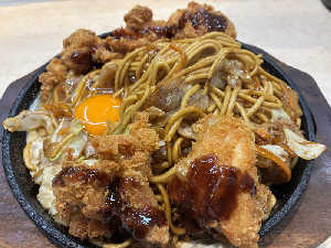 ご飯がお替り無料 焼きそば、チキンカツ、ご飯 最高の組み合わせです