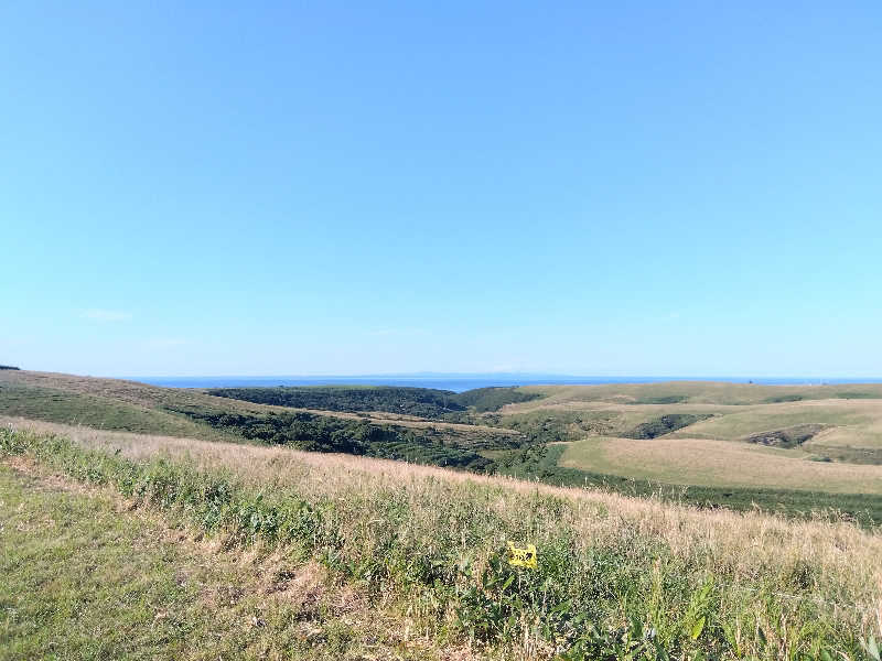 目の前は道の向こうが海🌊で、その先は利尻富士⛰️が見える絶景😉