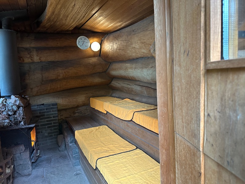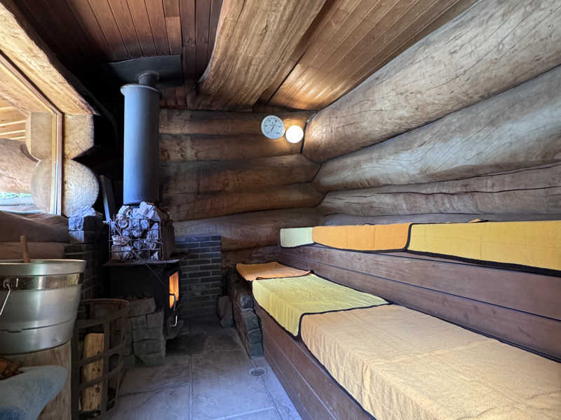 座る位置で感じる熱さが全然違って、薪サウナ特有の柔らかい熱に包まれ、すきま風も味わいながらまったりと4セット楽しみました。