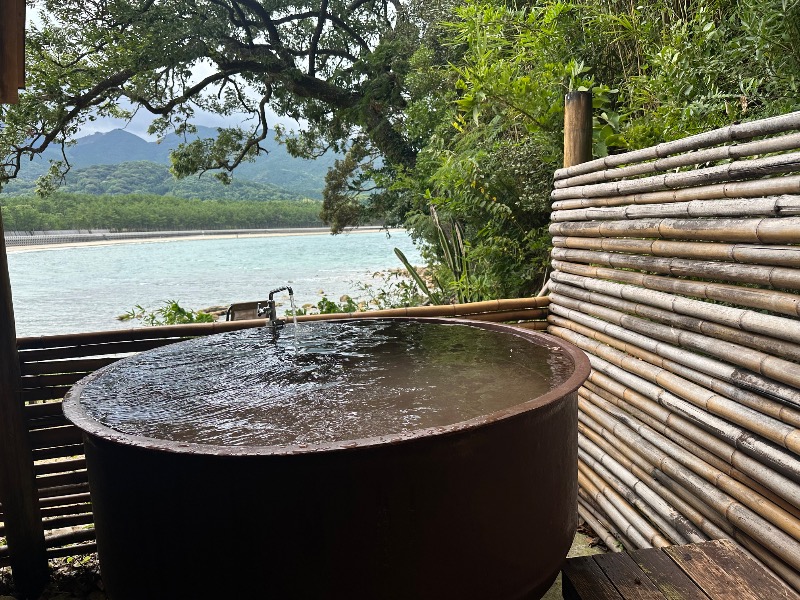 水風呂は隣にあるんだけどそちらからも海がすごく綺麗に見えるのはナイス👍ただし温度はそこまで冷たいわけではない。横に付いてるシャワーの水は井戸水から直引きだと思うんだけど何故かすごく冷たいから整い前に浴びるのがおすすめだよ