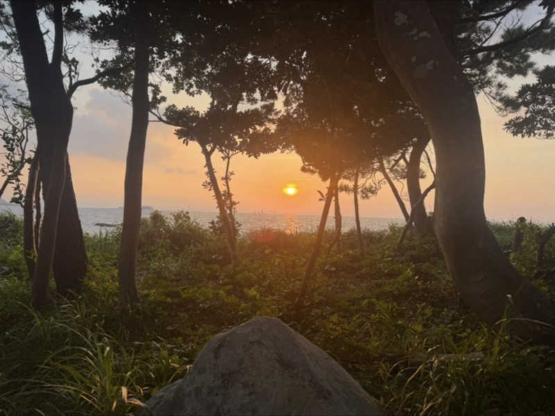 海パン上裸で海の上に佇む夕焼けを見ていたらなぜだか洋画のスタンドバイミーを思い出した。夕焼けの先には釜山が見えたとか見えなかったとか。