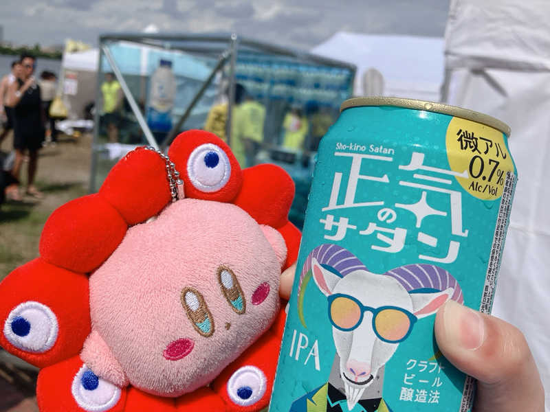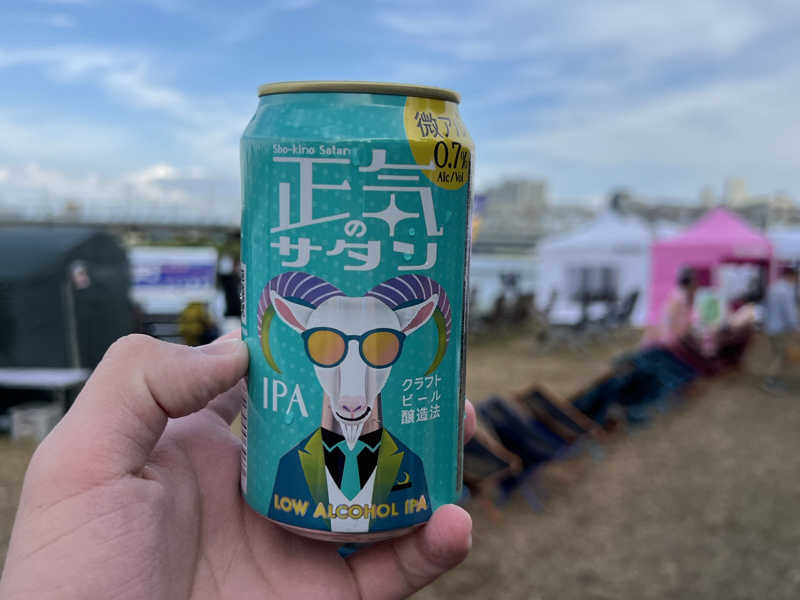 10:00〜12:00の回に参戦してまいりました。サウナフェス、というか何気にテントサウナ自体初体験、見渡す限り一面のサウナテントに圧倒されます。各々趣向を凝らしたサウナで目移りしますが……1セット目は正気のサタンさんへ。スチームジェネレーターまでついたかなり本格仕様のストーブが採用されており、熱々かつ湿度もしっかりの好セッティング。テントサウナでもこのクオリティのサ室環境が作れるものなのかと唸らされました。30過ぎてなおビールの味がいまいち分からない私ですが、それでもホップロウリュの芳醇な香りは大変よかったです。帰り際にいただいたビールもシトラスの瑞々しい香りが爽やかな逸品でした。