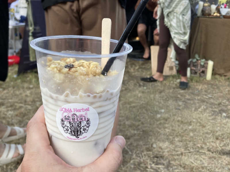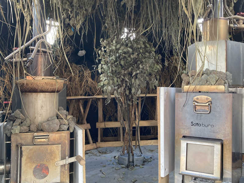 そして最後、テントの外まで独特の香りが漂うMaharajaさんのジャングル薬草サウナ。植物が所狭しと置かれ、頻回のロウリュと噴霧により湿度マシマシのテント内はまさに高温多湿の熱帯雨林といったところでしょうか。そしてなんと言ってもクラクラするほど濃厚なチャイの香り、呼吸するたびに薬草の成分が体に染み渡っていくような感覚……これはクセになりますね。