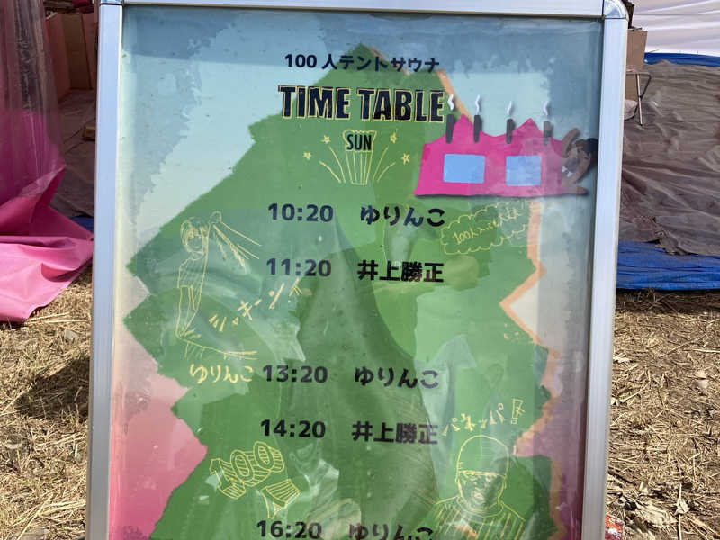 100人テントサウナをメインに過ごしましたがゆりんこさんと井上勝正さんの熱波の時間にはテント前に行列ができる人気でした👍