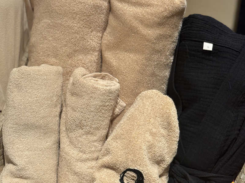 バスタオル・フェイスタオル・サウナハット・バスローブ・レンタル水着、無料貸し出しあり。