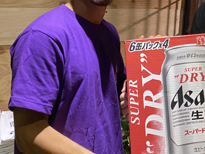 受付兼玄関にケンタさん✨オープン㊗️にビールの差し入れしてきました😁駐車場から徒歩2分、箱ケース持って行くには割と遠かった🤣 お😳まもるさんもいる✨受付のタクヤさんから一通り館内説明がありいざサ活!