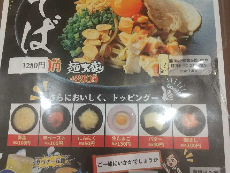 写真撮り忘れたのでメニューの画像を😅私はどうやら油そばには生タマゴいらない派みたいです💦