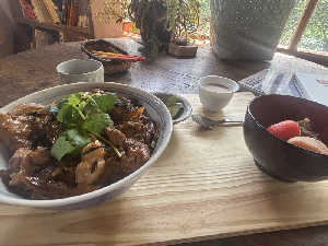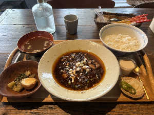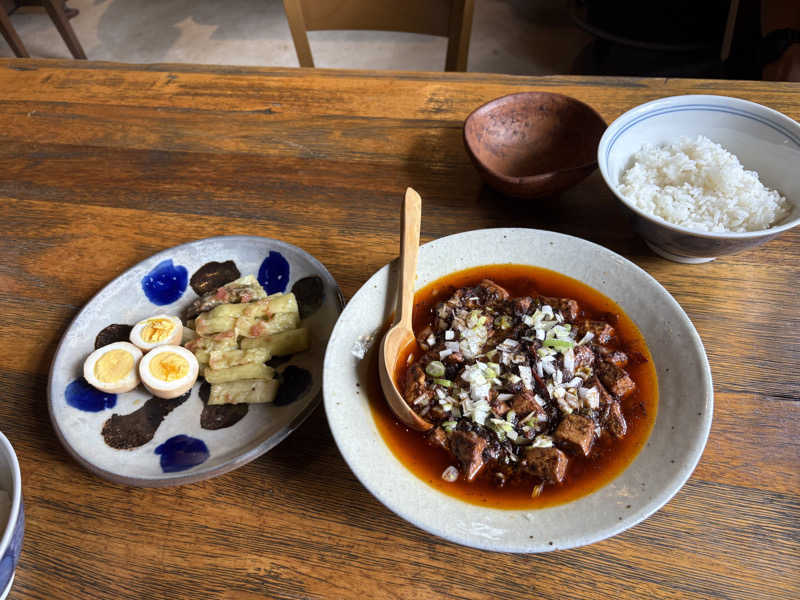 ゆで卵は酢漬け スープも酸味あって美味しい 団体利用で大皿盛り 回鍋肉もついて来た🤤