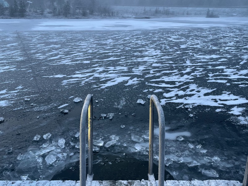 一面銀世界の氷が浮いてる環境で少しビビったが、水流がないのと、水質が良いのか、思ったより痛くなく割と入れるアヴァント体験!