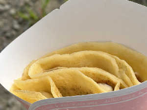 グルテンフリーの幟につられてオーダー、 数年ぶりのクレープ、モチモチの分厚い皮が最高