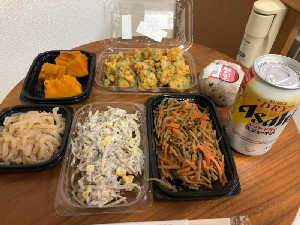 ポテトと唐揚げ摘まんでビール🍺旨し 仕上げにカツカレーだな