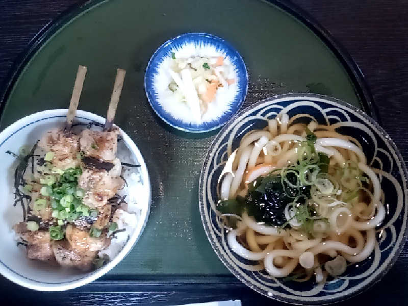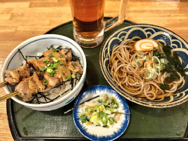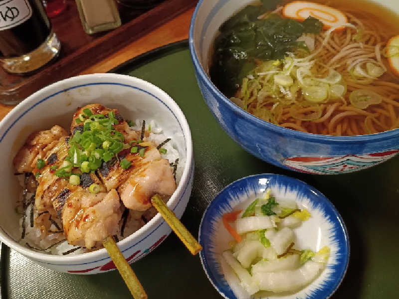 やきとり丼でした。そばは普通盛りに変更。美味しかったです。
