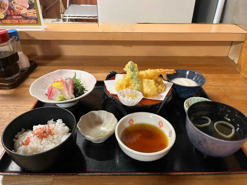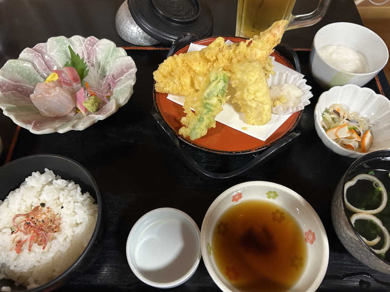 お刺身、天ぷら🍤、とろろどれも美味い😋サ飯が美味しい施設と評判どおりのお味でした!