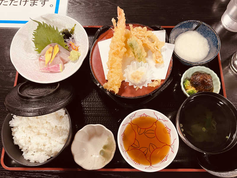 刺身、天ぷら、煮付け、富山やなと思わす海の幸御膳。美味い!他も美味そうやった、ビールが飲みたい笑