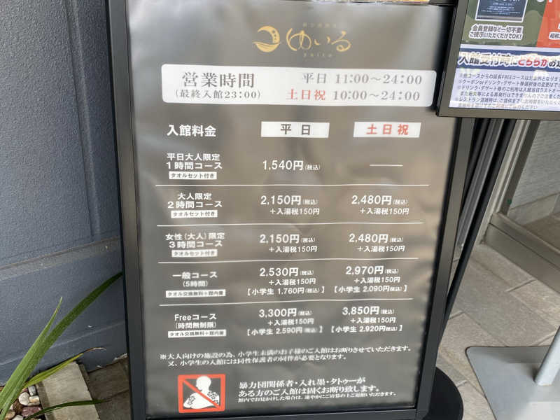 スタイル:タオル、うちわ 具体的なスケジュールは、浴槽に入る前のボードに書かれていますが、Twitter(@yuiru2021)でも発信しているようです。 リニューアルからアウフグースの時間が11:30~21:30の毎時30分に変更。(やらない時間もあり) |