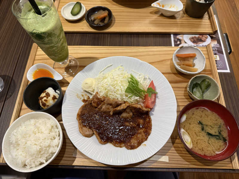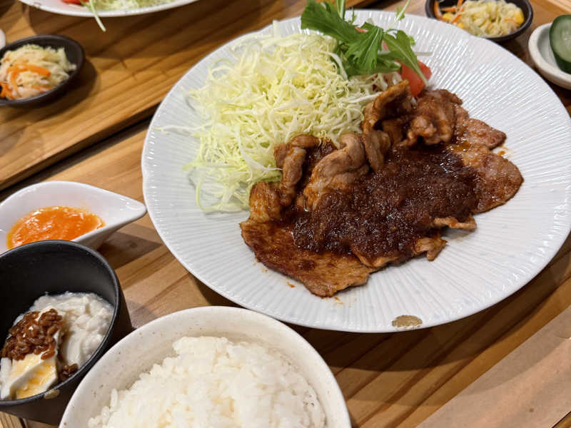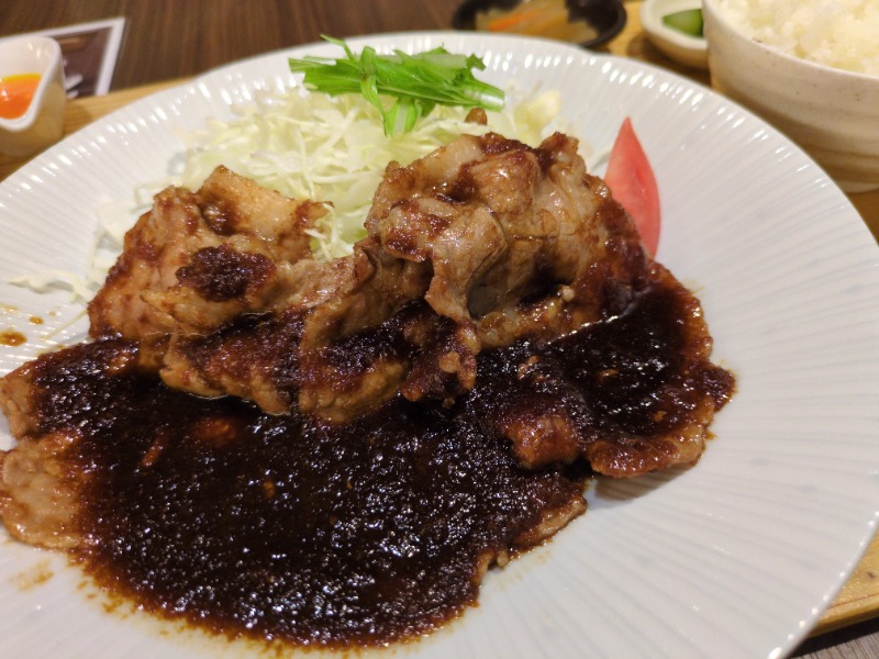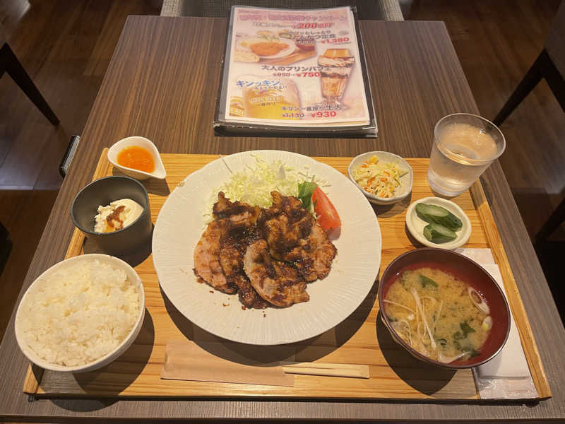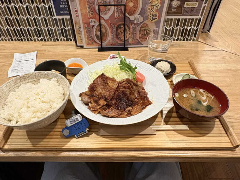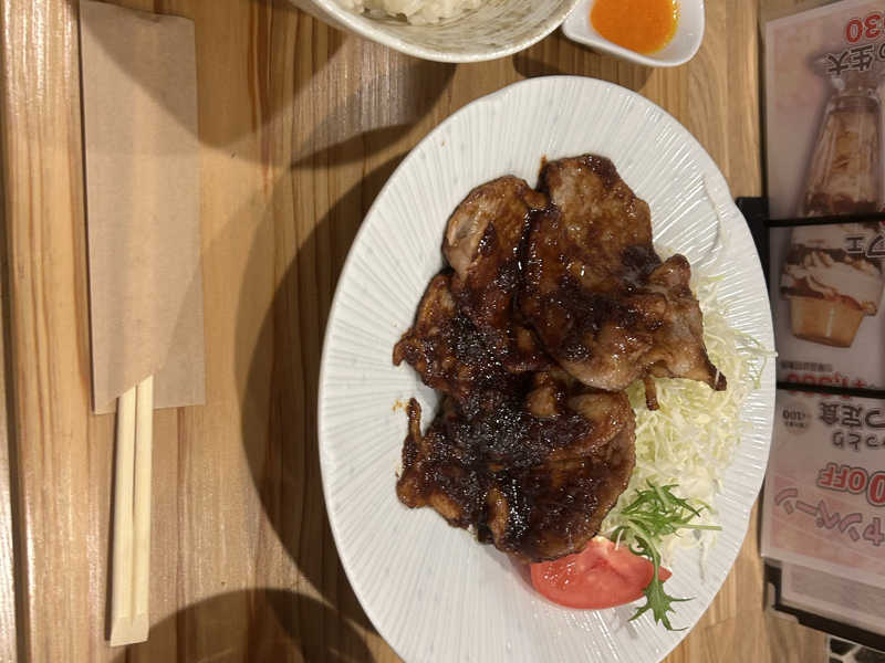 スーパーは生姜が2倍!たっぷり生姜と醤油感強めのお肉がサウナ後の身体に刺さります!ご飯大盛り推奨!