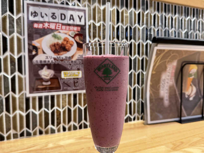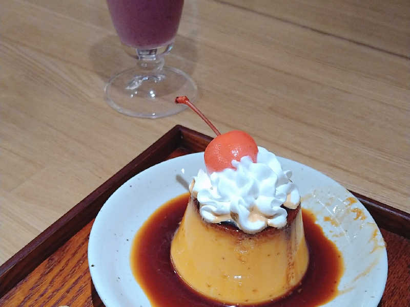 久々に食べたがこれより美味いプリンやっぱ無い。 フリー入館特典のぶどうスムージーイッキ飲み(笑)