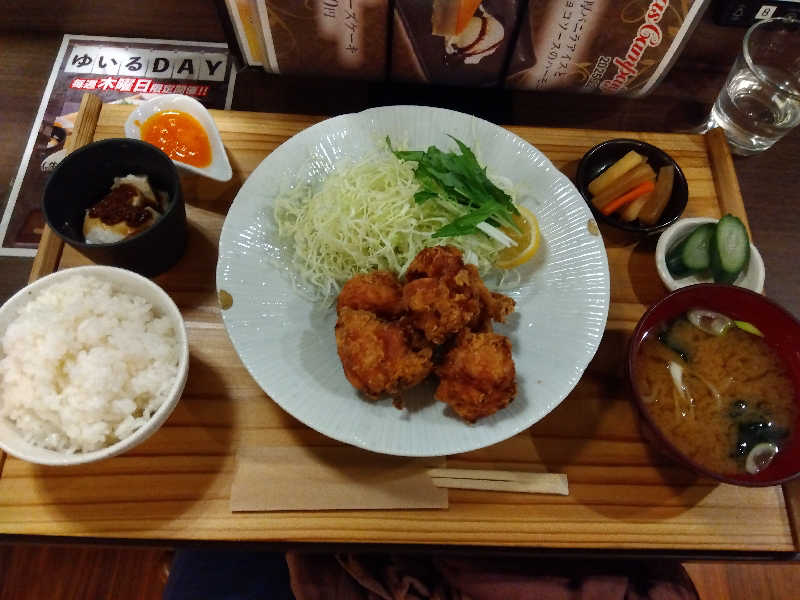 サンラータン、トマト🍅でスープが美味しかった〜唐揚げもうまい!