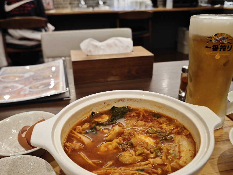 辛いけど旨味のある辛さで 具だくさんでとても美味しい サウナに入ったくらいの 滝汗でした 笑
