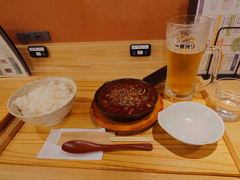 ほどよい辛さ🔥レモン、目玉焼きと合わせてさらにおいしく😋 生大🍺と合わせてお腹ぱんぱん