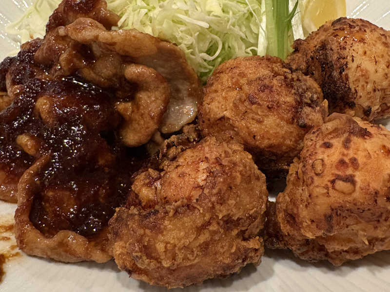 生姜焼き、むね・もも唐揚げが同時に味わえる幸せ😀