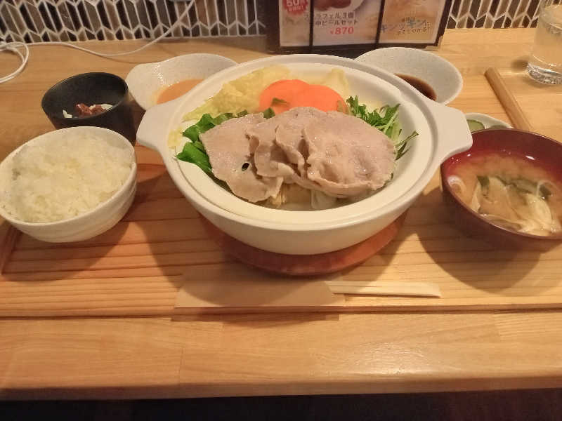 写真には写っていませんが、唐揚げ3個もつけて、サウナで消費したカロリーを台無しにしました!!