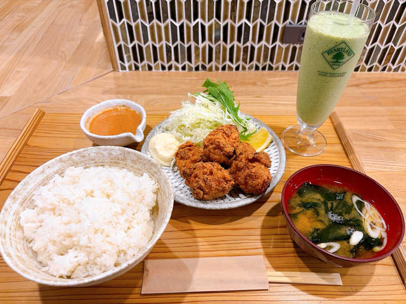 ヤンニョムマヨソースが唐揚げのと相性バッチリ👌 そして辛いけどモリンガと豆腐のスムージーで緩和👍