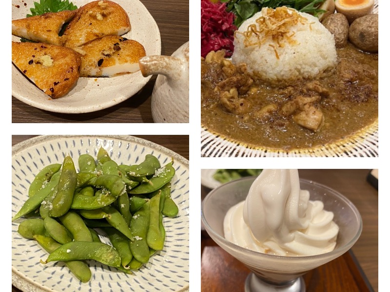 おやつは、黒枝豆、さつまあげ(小豆島の醤油)、コーヒーゼリーソフト。全部美味しい😋
