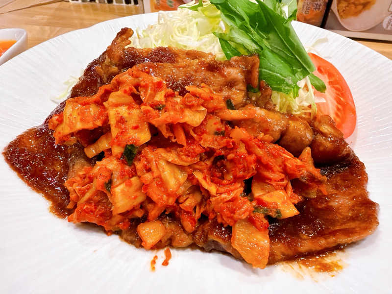 ゆいるのしょうが焼きとキムチの相性抜群! オススメです!