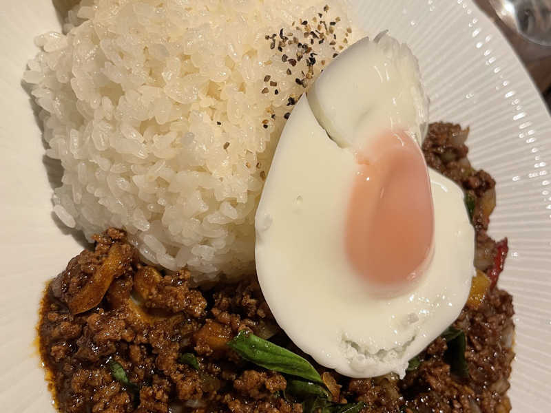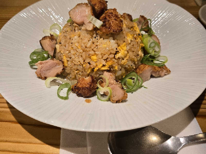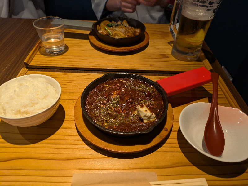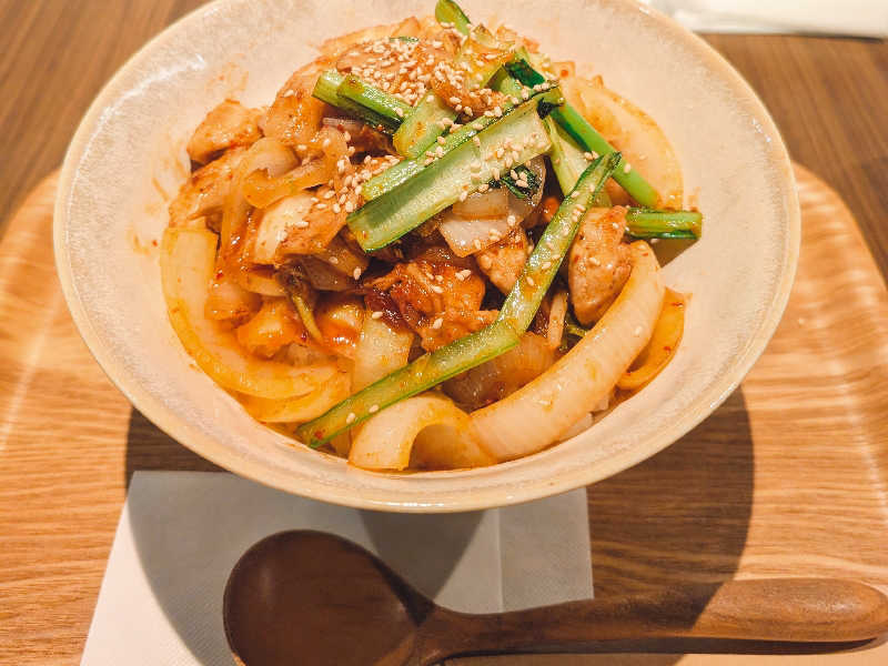 スプーンは丸みを帯びた形で優しそうですが 丼はめちゃ辛くて発汗作用の暴力すごいです🥵