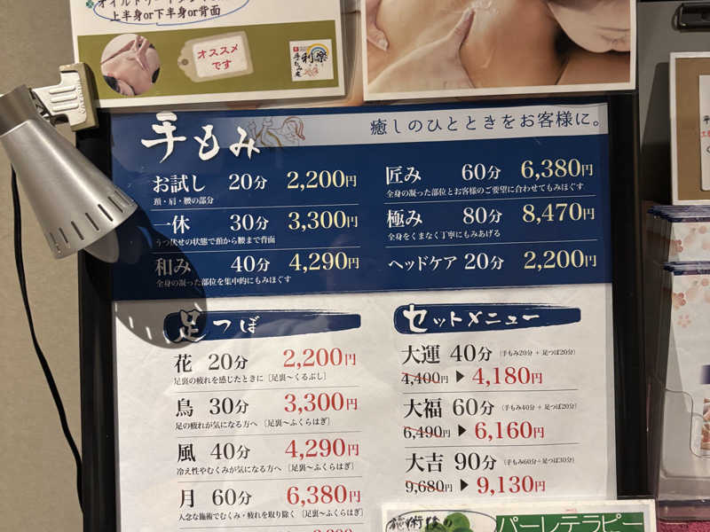 本当はマッサージとリンパ30分ずつで予約したんだけど、身体が張ってるから全部マッサージの方が良いと、安くなるのに提案してくれて。
