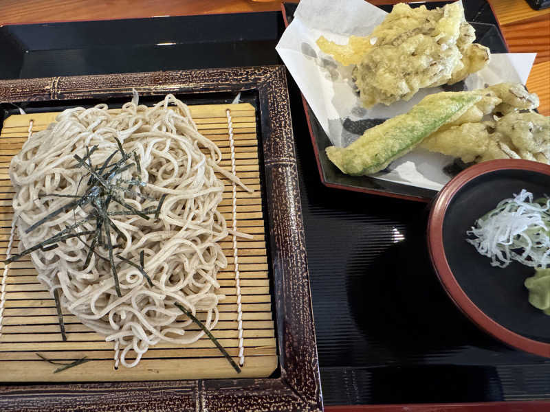 遅い昼飯、地粉のやつ 幅3センチくらいある、ひもかわ? モチモチ〜 ずっとモチモチ食べてたい