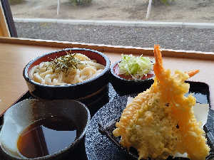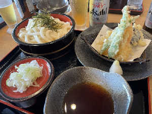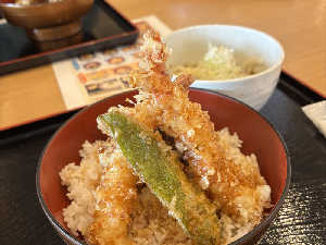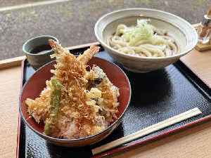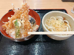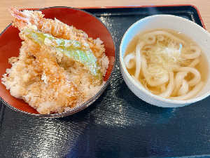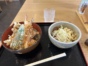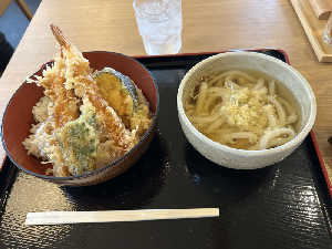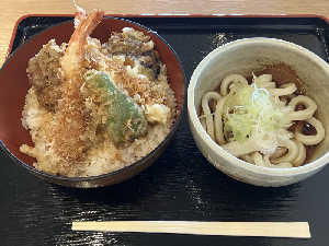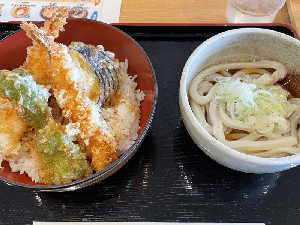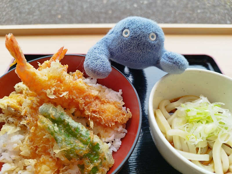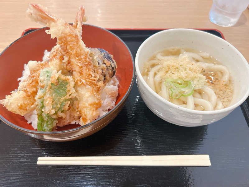 天丼+ミニうどん(冷たいの) 入浴とセットで1030円👀⁉️ なんつーお得😍 うどんのこし強っ👍旨し❣️