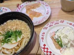 うどんは追加料金でミニうどん(冷)を麺2倍に。 温泉+食事がセットで1,030円~! 大満足です😋
