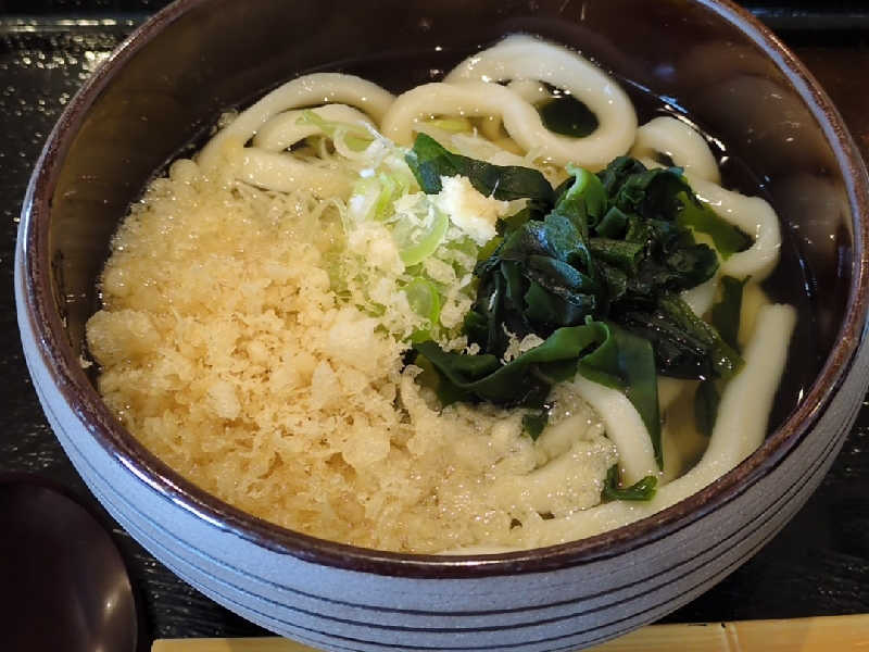 揚げ玉たっぷり入れてたぬきうどんに。おいしい、おいしい…。