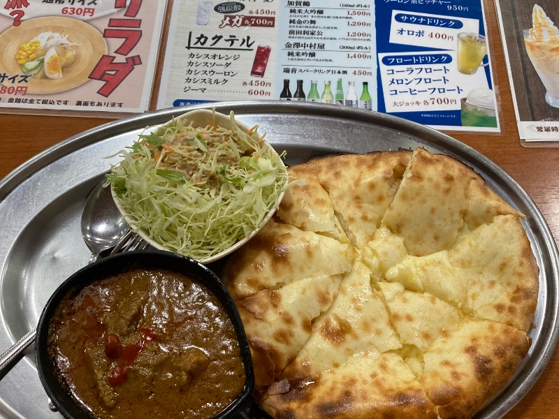 あまり油っぽくないナンでした!草の味がしました…違う意味で腹に重かった(笑) カレーの肉が大量🤤❤️