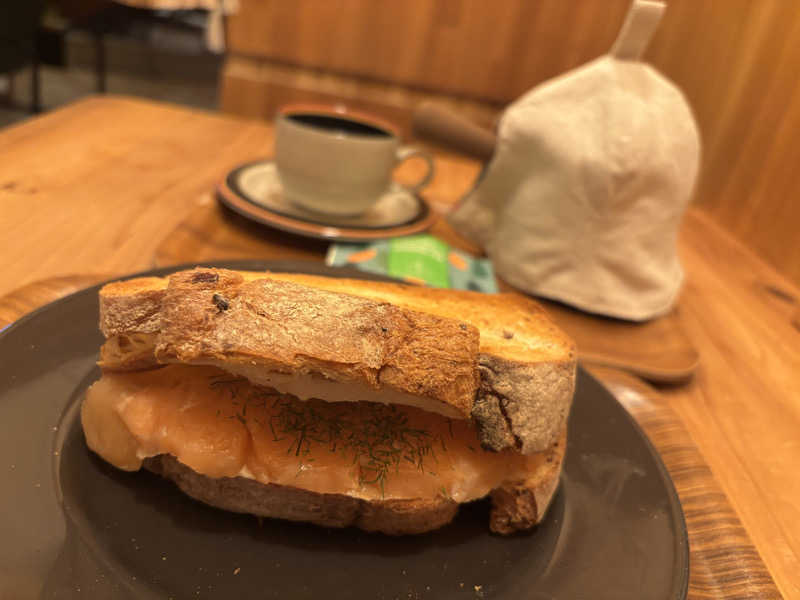 フィンランドといえばサーモン? 雰囲気を感じられる一品。 コーヒー(サウナブレンド)もそえて。