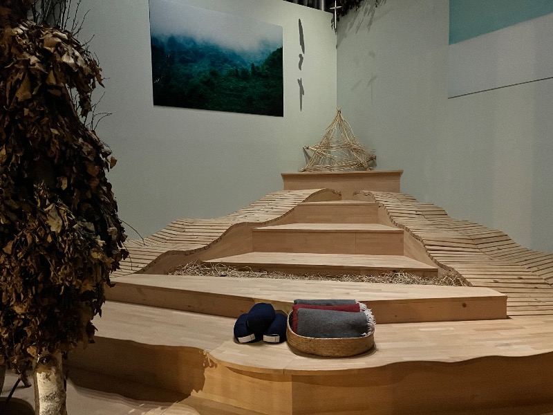 次にはフォレストへ。比較的大きく6人は並べる広さ。でも少し温度は低め。温度計がないので体感ですが、80度切ってるかな?こちらもセルフロウリュできるので、ロウリュしましたが広い分?あまり温度は上がらず。木の枕があったので寝サウナもしてみました。なんせ1人なんで(笑